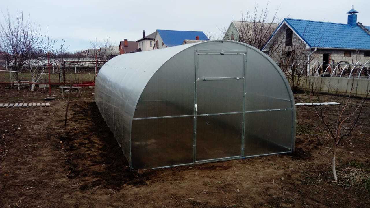 Хорошая теплица, размером 6 на 3 метра, каркас - оцинкованная труба, да и вообще все металлические части покрыты цинком для долговечности.