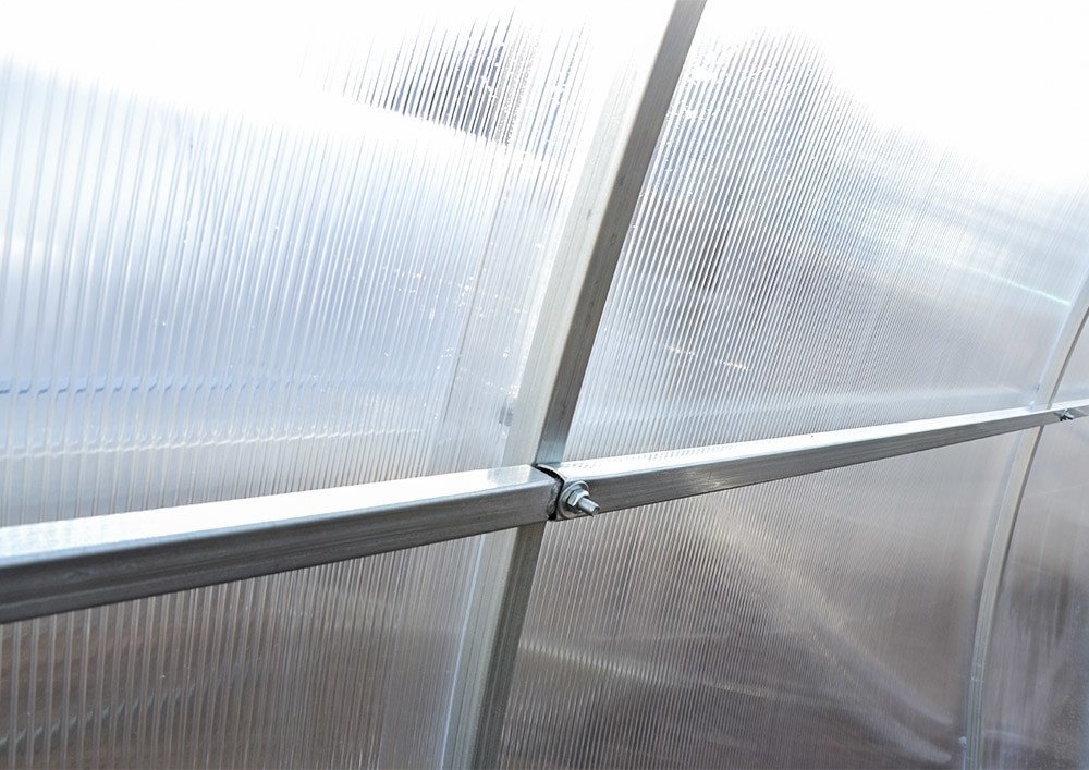 В комплект входит поликарбонат толщиной 4мм с защитой от ультрафиолета, гарантия 12 лет!!! Присутствует подробная инструкция по сборке и установке теплицы.