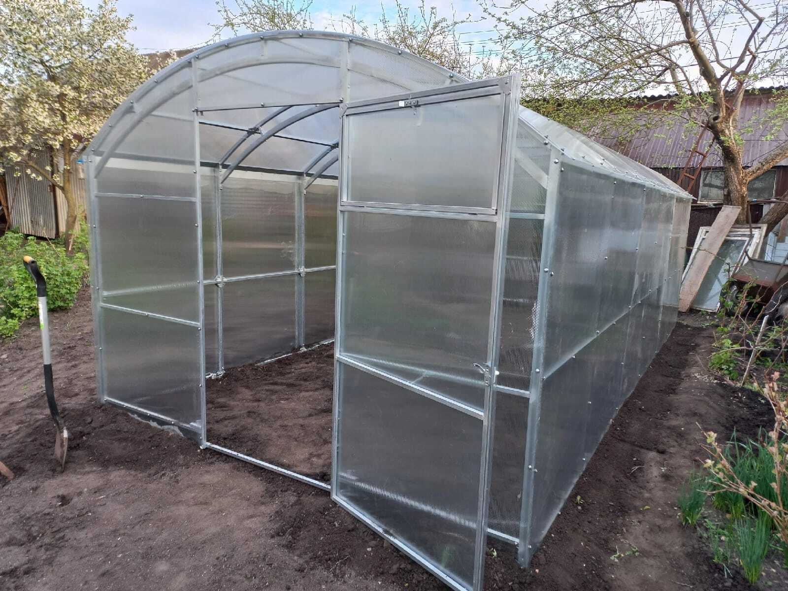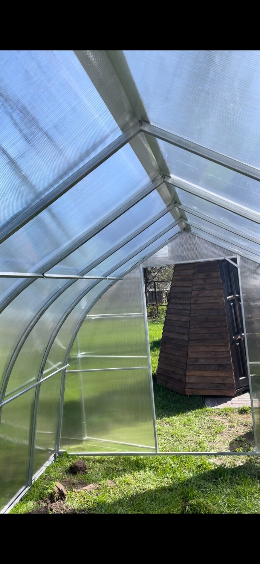 Хорошая теплица, размером 6 на 3 метра, каркас - оцинкованная труба, да и вообще все металлические части покрыты цинком для долговечности.