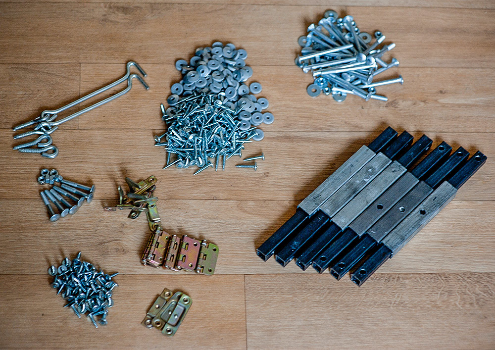В комплекте все необходимые для сборки болты и саморезы, а также Т-образные ножки.