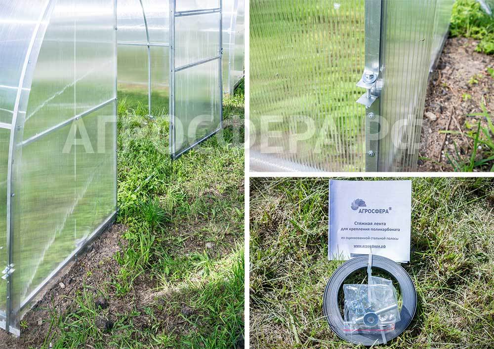 Теплица комплектуется качественным и долговечным сотовым поликарбонатом. Полная совместимость с системами капельного полива.